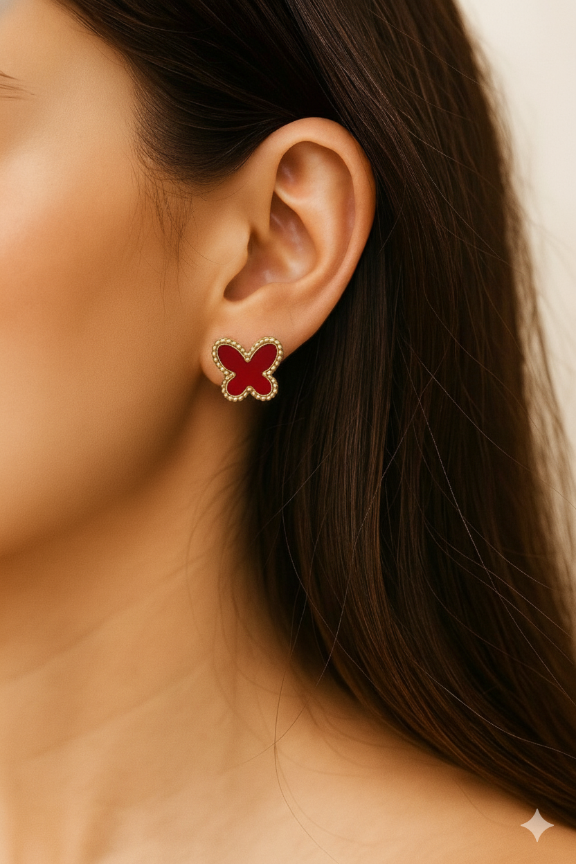 Brinco Feminino Borboleta Vermelha Aço Inoxidável Dourado Delicado Moderno