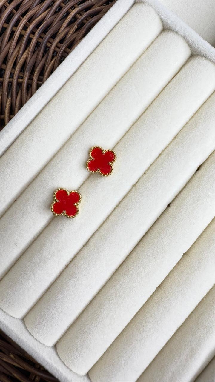 Brinco Feminino Trevo Quatro Folhas Dourado Aço Inoxidável Cor Vermelho