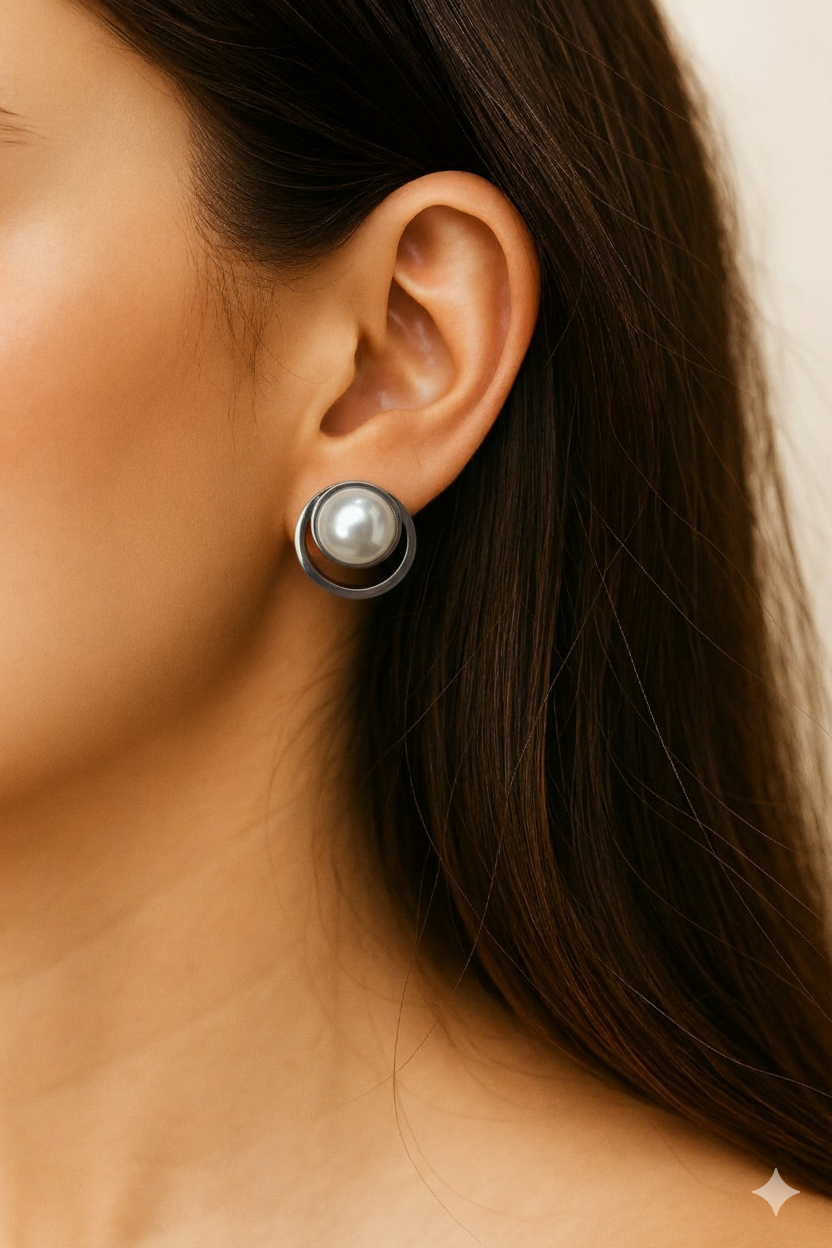 A pérola traz delicadeza ao visual, enquanto o acabamento prateado garante brilho sutil e atemporal.