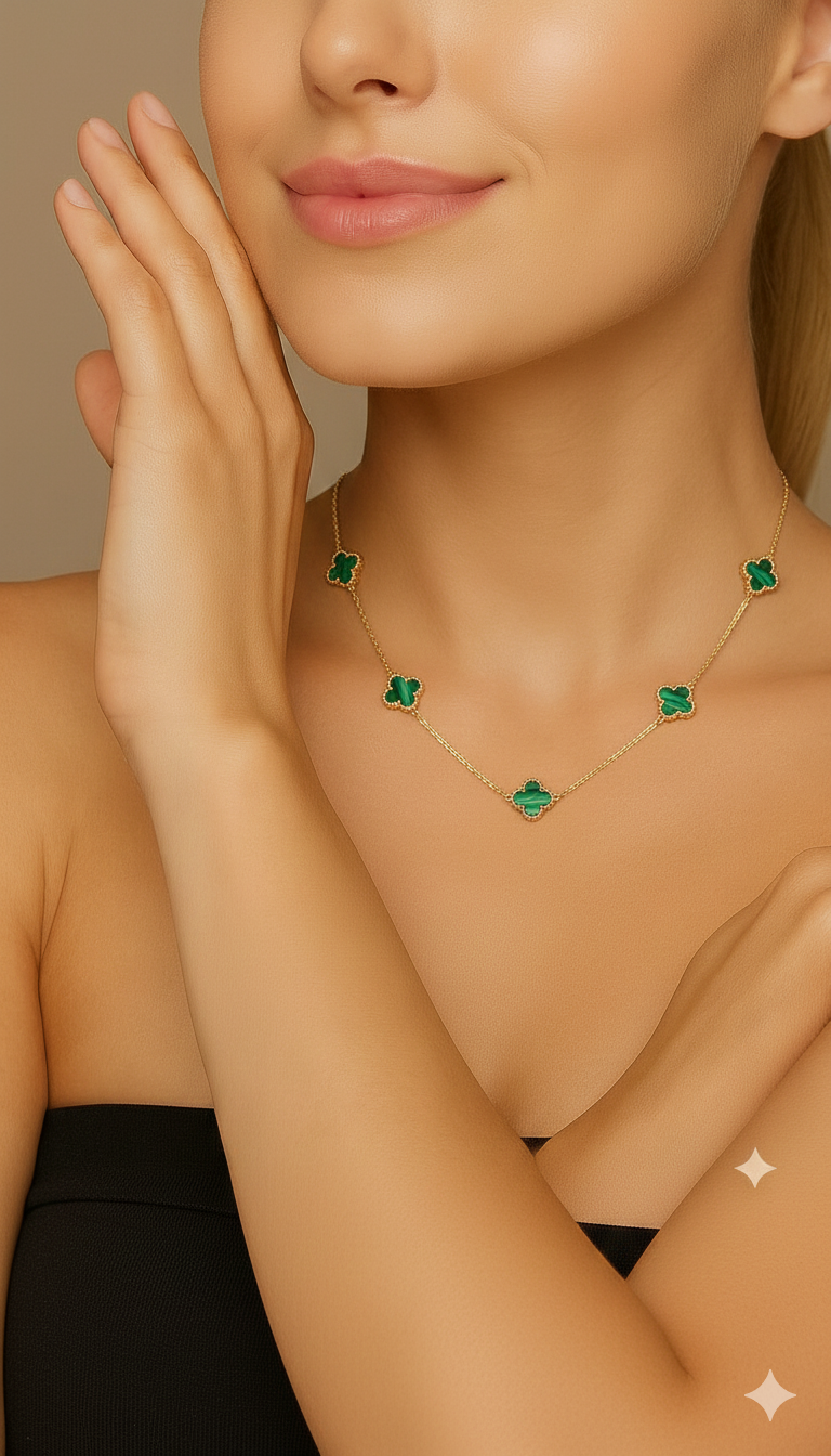 Colar de Trevo de Quatro Folhas Aço Inoxidável Dourado Verde Brilhante