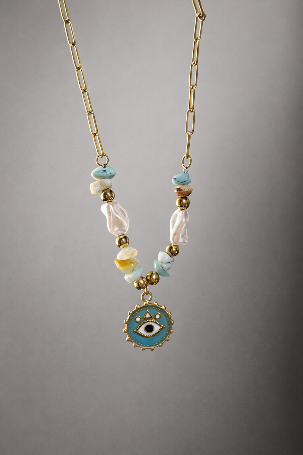 Colar Olho Grego com Pedras Delicadas Aço Inoxidavel Dourado Amuleto de Proteção