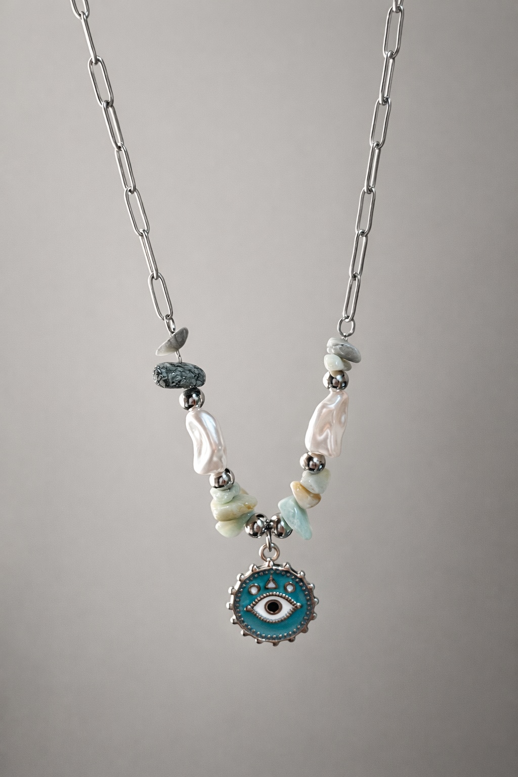 Colar Olho Grego com Pedras Delicadas Aço Inoxidavel Prata Amuleto de Proteção