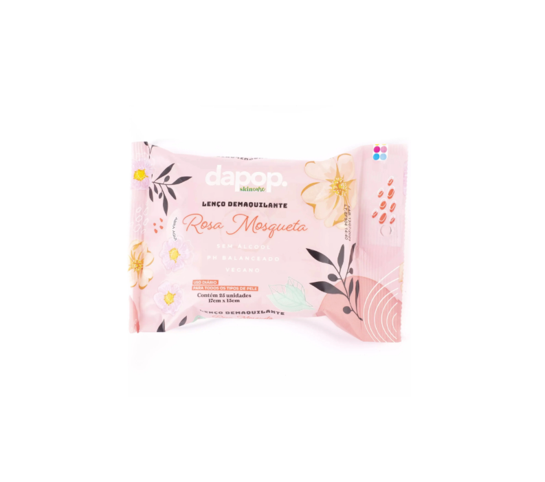 Lenço Demaquilante Rosa Mosqueta Dapop — pele limpa, hidratada e protegida com cuidado e praticidade todos os dias!
