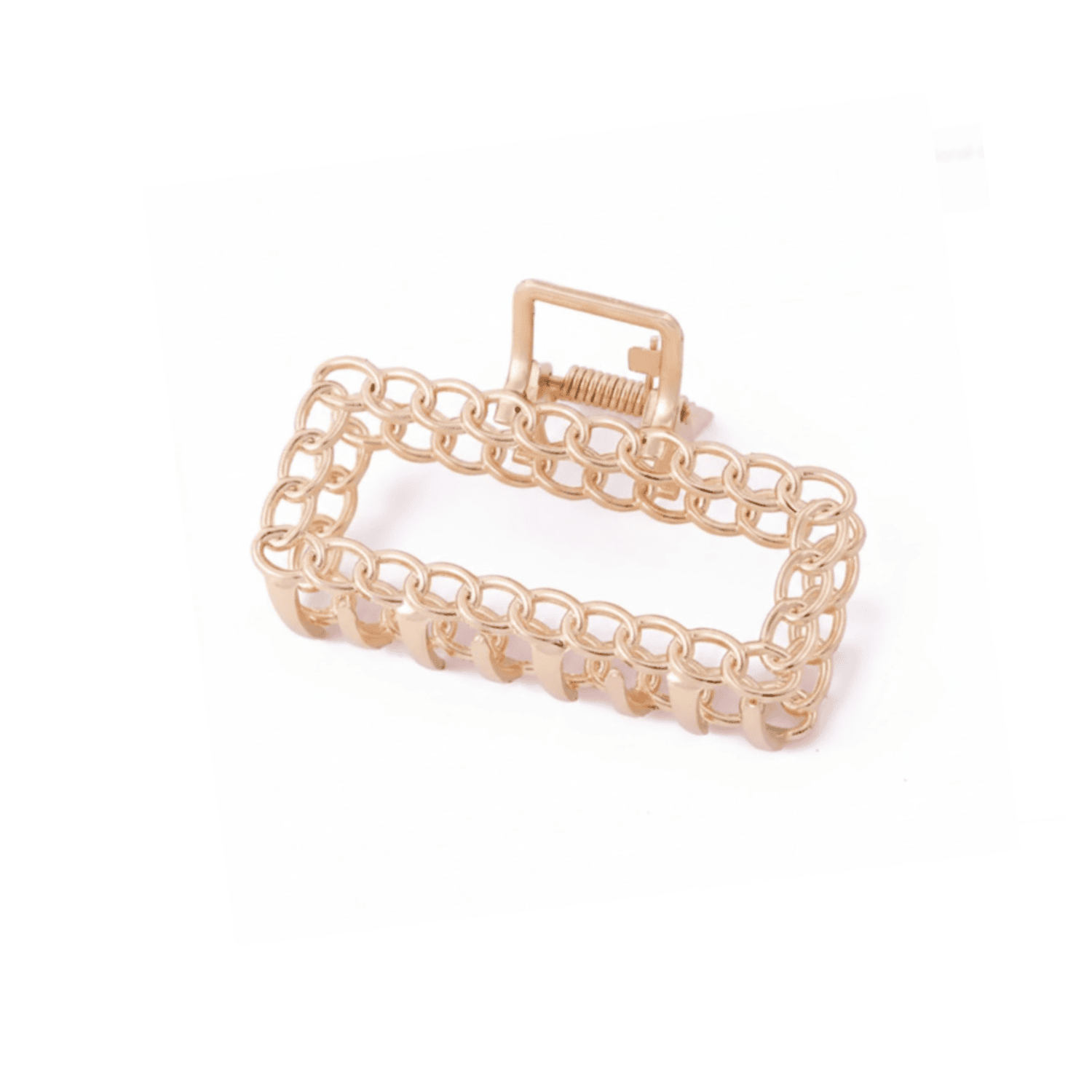 A Presilha de Metal Dourada Retangular é aquele acessório clássico, elegante e super versátil que transforma qualquer penteado com um toque moderno. Seu formato retangular garante um visual minimalista e sofisticado, perfeito para quem ama detalhes que fazem diferença sem exagero.