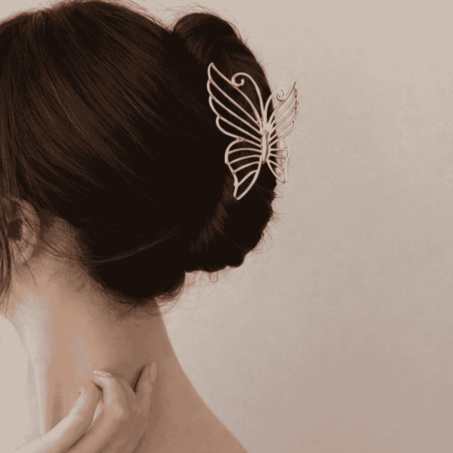 Abra a presilha, posicione no cabelo conforme o penteado desejado e solte para fixar. Ideal para prender mechas, fazer coques ou semi-presos com estilo. ✨🤍