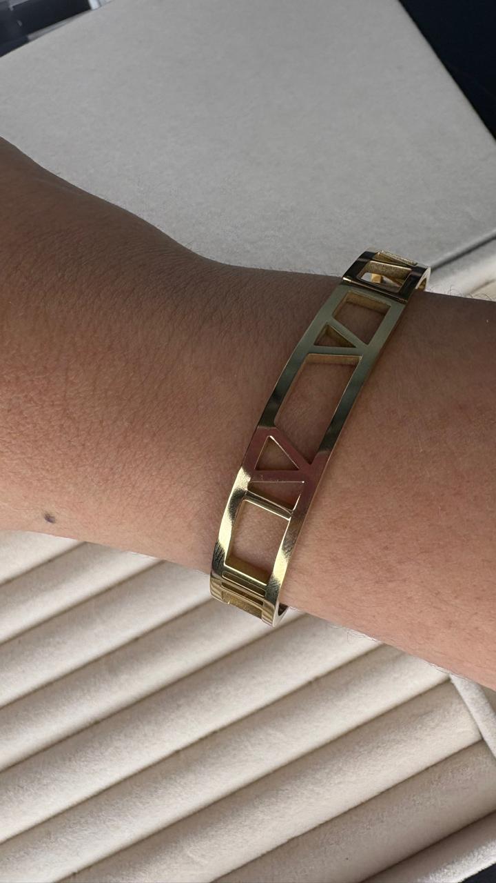 Pulseira Bracelete Aço Inoxidável Dourado com Detalhes em Números Romanos
