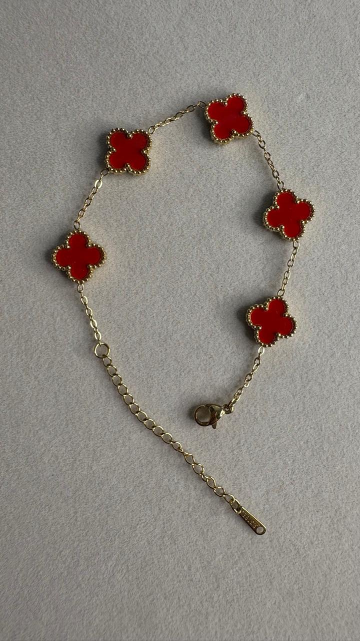 Pulseira de Trevo de Quatro Folhas Aço Inoxidável Dourado Vermelho