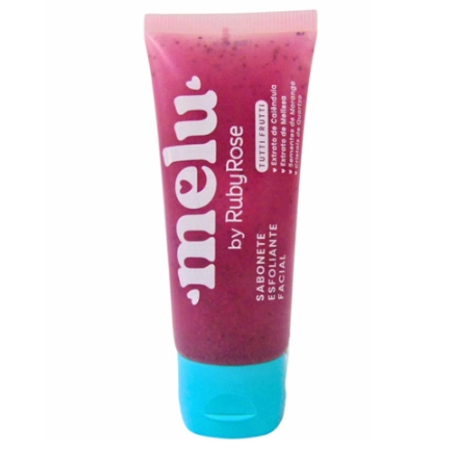 Sabonete Facial Esfoliante Melu Ruby Rose — pele limpa, suave e pronta para brilhar todos os dias!